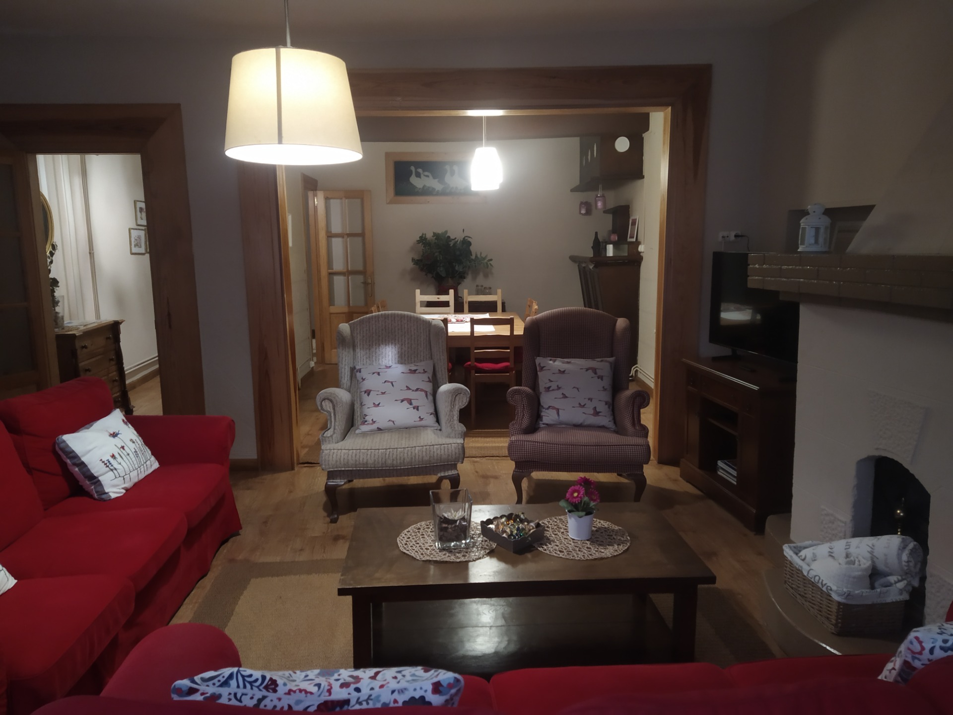 Casa de dos plantas, dispone de 5 habitaciones (hasta 12 personas), 2 baños completos, un salón amplio y acogedor, comedor espacioso y una cocina completamente equipada con horno, lavavajillas, microondas, nevera, menaje completo, pequeños electrodomésticos como cafetera de cápsulas y de goteo, exprimidor, tostadora, hervidor, batidora…También cuenta con lavadora, plancha, WiFi gratuito, ropa de cama, toallas y TV.